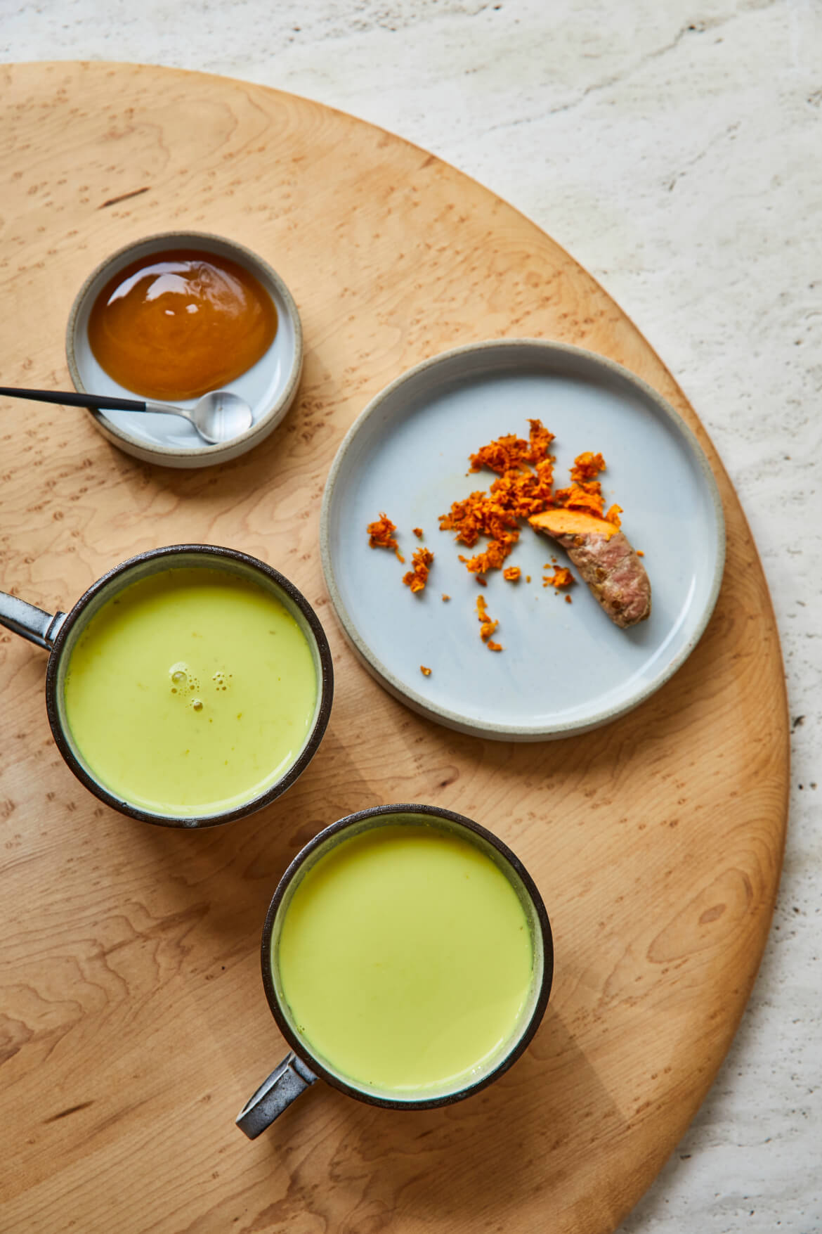 Stir the milk and turmeric in a heavy, small saucepan over medium-high heat just until warm. Strain the turmeric milk into cups and sweeten with Mānuka Honey to taste.
