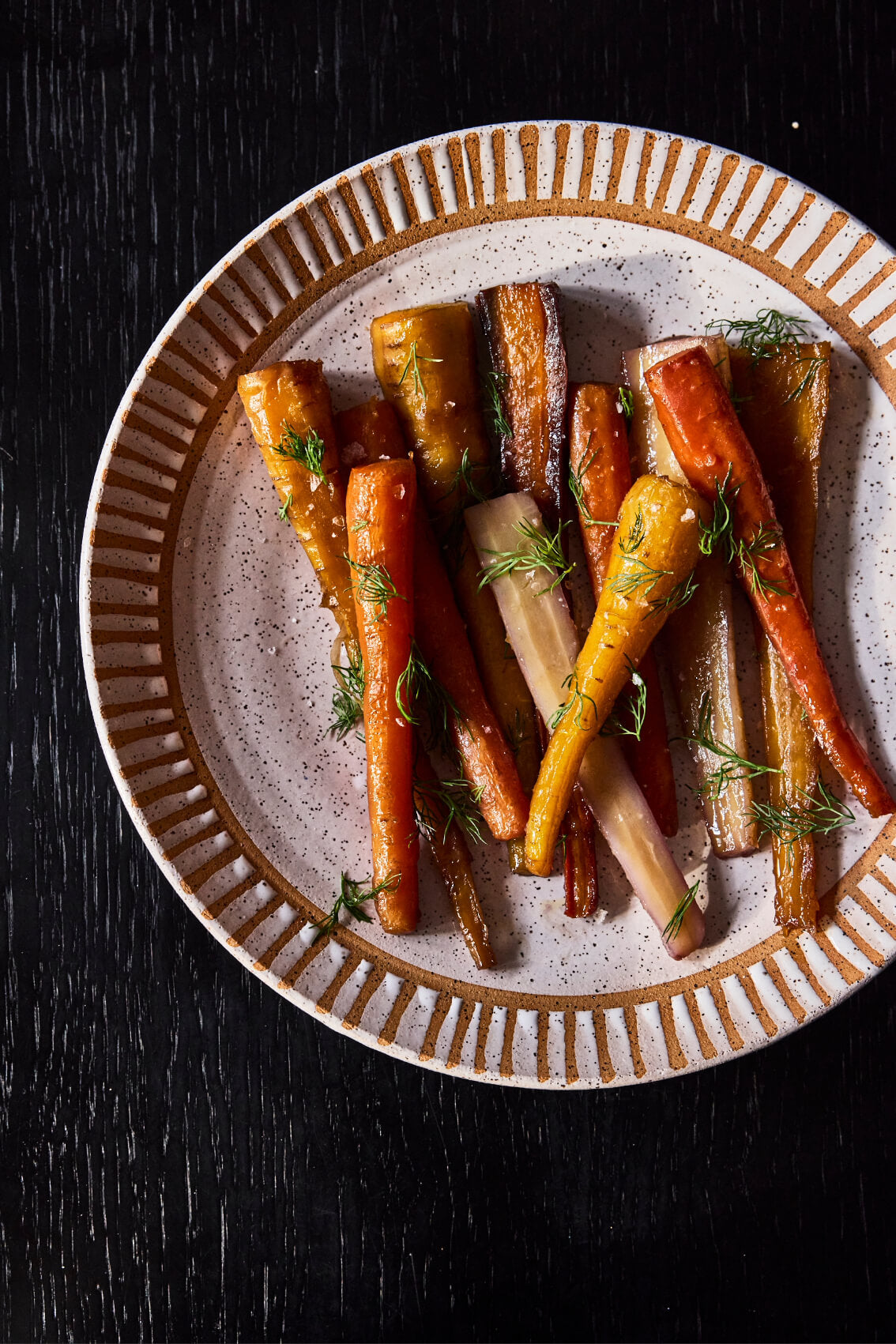 Fill a large skillet with 1–2 inches of water and bring to a boil. Add the carrots and enough water to cover them. Simmer until tender but not overcooked. Pour out the water, then add the orange juice, honey, butter, and salt. Stir to combine.